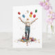 Das Bild zeigt einen älteren Mann mit einem langen, weißen Bart, der Hosenträger und Jeans trägt, der freudig seine Arme in der Luft hebt. Er steht inmitten farbenfroher Ballons, die über ihm schweben, umgeben von Konfetti und präsentiert sich verstreut um seine Füße. Sein Ausdruck strahlt reines Glück aus, als würde er den Moment des Feierns voll und ganz annehmen. Das Bild vermittelt einen lebendigen und sorglosen Geist, der die Freude an Geburtstagen und besonderen Anlässen symbolisiert.