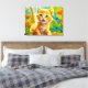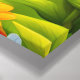 Ein niedliches, orangefarbenes Kätzchen, das in einem Blumengarten mit farbenfrohen Libellen schmiedet.