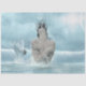 Zierpapier mit dem Bild einer Meerjungfrau in den Farben Blau und Weiß.