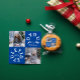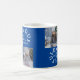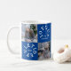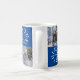 Joyous Yuletide Tasse mit zwei Fotos, Familienname und Jahr. Bildvorlagen über Pixabay, lizenziert unter CC0 und muss durch eigene Foto ersetzt werden
