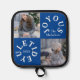 Joyous Yuletide potholder with two family photos, family name and year. Photo templates via Pixabay licensed under CC0 and must be replaced with your own photos