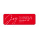 Dieses Weihnachtskarten-Rücksendelabel enthält ein modernes Script Joy sowie Platz für einen Namen und eine Adresse. Ideal für eine Vielzahl von Ferienkarten, ist dieses Adressetikett ein helles Rot, aber auch in anderen Farben erhältlich. Senden Sie Ihren Feiertagsjubiläum und verkleiden Sie Ihren Urlaubskorbut mit diesem schicken und stilvollen Rücksendelabel für Ihre Weihnachtskarten.