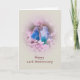 Zwei liebevolle Parakets in Kombination mit sanften rosa Krabbelblüten auf hellbeigem Hintergrund machen eine bunte und süße Jubiläumskarte aus. Der Kunde kann das Innere so gestalten, dass er seine eigenen Bedürfnisse Anzug.