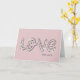 Blubble Text mit Mandelblütendesign auf rot-rosa Hintergrund. Alle Texte sind außer für LIEBEN bearbeitbar.