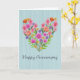 Das ist eine schöne Jubiläumskarte für ein Paar, das ihre Liebe feiert. Es handelt sich um Blume, die in ein Herz auf hellblauen Streifen angeordnet sind.