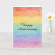 Feiern Sie Liebe mit Eleganz und Einfachheit. Diese minimalistische Jubiläumskarte bietet einen weichen Regenbogenfarben-Hintergrund und ein klassisches "Happy Anniversary"-Skript. Ein zeitloser Weg, gleichgeschlechtliche oder LGBTQ+ Paare an ihrem besonderen Tag mit subtilem Stolz und herzlicher Herzlichkeit zu ehren.