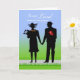 Hochzeitstag Grußkarte für ein Paar. Die Karte hat ein religiöses Christliches Thema mit der Silhouette eines afroamerikanischen Ehepaares in Kirchenbekleidung und einer Heiligen Bibelsage aus 1 Korinther 13 (World English Bible in Public Domain), die innen geschrieben ist. "Der süße Herr antwortete deinen Gebeten" ist auf dem Kartendeckel in Weiß geschrieben. Kunst, Bild und Vers © Shoaff Ballanger Studios.