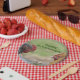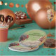 Auf dieser Jubiläumsplatte denken 2 Hühner an einen über der Decke fliegenden Falken. Humorvolle/niedliche Papiertafel für ein lässiges Jubiläum-Party.