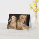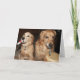 Zwei goldene Retrievers spielen Musikinstrumente, ein Kazoo und Schlagzeug. Sie zeigen ein paar schöne Musik zusammen, auch nach vielen Jahren der Ehe.