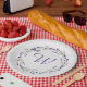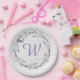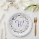 Lavendelkranz mit einem lila Schmetterling auf weiß gekalktem Holzboden für ein Jubiläum Party. Monogramm kann geändert werden.