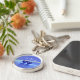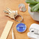 Schlüsselanhänger mit meinem Bild von saphir herzen schwimmen auf dem Wasser unter einem Regenbogen.