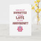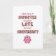 Wünschen Sie jemanden ein glückliches verspätetes Jubiläum mit dieser lustigen Karte mit der Nachricht: "Was für ein MONSTER wäre spät für Ihr Jubiläum? Unter dem Haupttitel erscheint ein niedlich rosa illustriertes, ein mit Augen Monsterzeichen mit einem runzligen Gesicht. Inside hat diese Nachricht, kann aber mit Ihrer eigenen persönlichen Nachricht personalisiert werden; Ahem ... Wir wissen beide GENAU, wer dieses Monster ist. (Entschuldige das!) Hoffe, dein Jubiläum war wunderbar, genau das gleiche!
