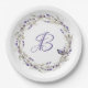 Lavendelkranz mit lila Schmetterling auf weißem Hintergrund. Das Monogramm ist bearbeitbar. Die Hintergrundfarbe kann geändert werden.