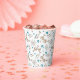Dieser lustige Papierbecher zeichnet sich durch ein sich wiederholendes Muster an Feierelement-Grafiken aus, darunter Champagnergläser, Bänder und Herzen in aquamarinem Blau und Gold. Geeignet für Jubiläen oder romantische Anlässe. Wählen Sie eine Hintergrundfarbe, um Ihre Bedürfnisse zu Anzug (sieht gut auf schwarz für einen Abend Look auch). Suchen Sie ID723 um weitere Farboptionen und Produkte mit diesem Design zu sehen.