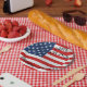 4. Juli feiert Papier Party Teller. Papiertassen passen zusammen. Bearbeitbarer Text. Fügen Sie Ihre eigene Nachricht/Namen hinzu.