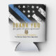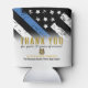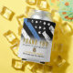 Dieses Design verfügt über eine Polizeiflagge mit schwarz-weißen Streifen und einen dünnen blauen Streifen. Das kann cooler sein, wenn es darum geht, einem Offizier, der ein Jubiläum feiert, Anerkennung zu zollen oder einem pensionierten Strafverfolgungsbeamten, Sheriff, Kapitän oder Chef für ihre Dienstjahre zu danken.
