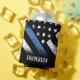 Dieses Design verfügt über eine Polizeiflagge mit schwarz-weißen Streifen und einen dünnen blauen Streifen. Dies kann cooler gestaltet werden, um einem Offizier, der ein Jubiläum feiert, Anerkennung zu zollen oder einem pensionierten Strafverfolgungsbeamten, Sheriff, Kapitän oder Chef für ihre Dienstjahre zu danken.