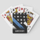 Dieses Design verfügt über eine Polizeiflagge mit schwarz-weißen Streifen und einen dünnen blauen Streifen. Dieses Kartenspiel ist ideal, um einem Offizier, der ein Jubiläum feiert, Anerkennung zu zollen oder einem pensionierten Strafverfolgungsbeamten, Sheriff, Kapitän oder Chef für ihre Dienstjahre zu danken.