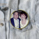 Happy Jubiläumsfoto Vorlage mit Gold Rahmen. Button/Lapel-Pin ist bereit, um anzupassen. Ändern Sie das Foto und/oder den Text.
