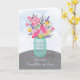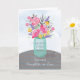 Wünschen Sie Ihrem Sohn und Ihrer Schwiegertochter Segen zum Jahrestag. Diese hübsche Kaugummi-Vase hält einen gemischten Strauß von Aquarellfarben-Blume auf einem gestreiften Tisch. Hübsche religiöse Karte, um glücklichen Jahrestag zu sagen.