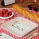 Jubiläumsjacke auf Pfirsichrosa Pappteller