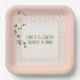 Eleganter, quadratischer, weißer Spitzenrahmen mit weißem Hydrangea-Brautbukett auf pfirsichrosa Hintergrund. Für ein Hochzeitstag Party oder Hochzeit Vow Renewal Empfang. Text ist bearbeitbar.