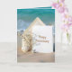 Eine leere Karte ist ein elegantes Set vor dem Hintergrund des Strandes, begleitet von zarten Blume aus weißer Zigeuner, Seestern und einem Sand-Dollar. Alle Texte können geändert werden.