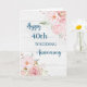Happy 40. Hochzeitstag-Karte mit schönen rosa Aquarell-Blume und rustikalen Holzmuster und sentimental Vers.