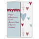 Jubiläumskarte für Ihre besondere Tante und ihren Ehemann mit aquamarinen und roten Herzen auf aquamarinem und weißem Hintergrund. Dank der hungrigen jpeg für einige der Elemente in der Gestaltung.