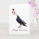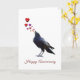 Auf dieser Jubiläumskarte singt eine Krähe mit roten Herzen Liebe.