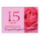 Jubiläumskarte an Tochter & Ehemann. Überraschen Sie ein ganz besonderes Paar an ihrem besonderen Tag mit diesem nahen, großen rosa Rosa. Diese rosa Rosenjungkarte ist für viele verschiedene (Familien-)Beziehungen in nicht-englischen Sprachen und für viele verschiedene Jubiläumsjahre erhältlich