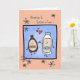 Diese niedliche Jubiläumskarte für Ihren Bruder und Ihre Schwester im Recht zeigt eine skurrile Cartoon-Abbildung einer Schokoladensirup-Flasche und eines Krug Milch, der Hände auf einem blauen Polka-Punkt-Hintergrund mit roten Herzen und weißen Molsen in einem pfirsichfarbenen Hintergrund gerahmt.