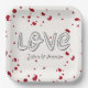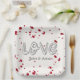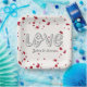 Blubble Text mit fallenden rote Rose Blättern auf einem Elfenbeinhintergrund für ein Jubiläum-Party. Text ist außer für LIEBE bearbeitbar. Die Hintergrundfarbe kann geändert werden.