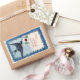 Rechteckiger Aufkleber mit einem Vintage-Bild eines blauen Vogels mit einem Neujahrsgruß verbunden mit blauen Bändern und versiegelt mit rotem Wachs in einem Rahmen von schönen blauen Blumen. Siehe passende Grußkarte und Etikett. Die gesamte Neujahrsaufkleberkollektion finden Sie unter CARDS & STICKERS Kategorie im Bereich HOLIDAYS.