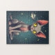 Judging Sphynx Cat UFO Space Cartoon Art Puzzle
