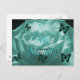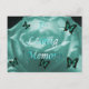 Weiße Rose in aquamarinen Farbtönen und Schmetterlingen im Fliegen geschnitten. Fotografie von Amber Sharp Diese Postkarte wurde in Erinnerung an die Großmutter meines Sohnes erstellt. Die Rose ist eine Blume, die er von ihrem Beerdigungsdienst erhielt. Sie liebte Schmetterlinge, und ich dachte, dieses Design sei eine wunderbare Möglichkeit, eine Blume aus ihrem Dienst mit den Schmetterlingen zu integrieren, die sie liebte.