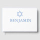 Eine hebräische Zeremonie zum Gastbuch zum Tag der Namen. Die Vorlage hat ein blaues Design. Die Designvorlage hat farbigen Text, der mit dem Datum auf dem Rücken leicht auf Ihre Informationen geändert werden kann. Die Rückseite hat einen weißen Stern von David wiederholt auf einem blauen Hintergrund.