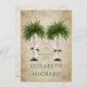 Ein jüdischer "Under the Chuppah" und Palmen Elegant Wedding Champagne. Zwei elegante Palmen bilden einen Teil des Baumkronenbodens Über die Braut und die Bräuche und das Hochzeitstag. Elegantes modernes formales Hochzeitsdesign. Die Informationen auf der Rückseite können leicht auf Ihre eigenen und Ihre eigenen Worte geändert werden. Das moderne Skript kann leicht für Ihre eigenen Informationen geändert werden. Eine maßgeschneiderte Hochzeitseinladung aus einer Suite von Hochzeitsstandort bei Just Fine Designs.