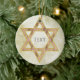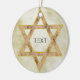 Goldenes jüdisches Star-Keramik-Ornament mit auf beiden Seiten individualisierbarem Text.
