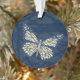 Muster, die von traditionellen jüdischen Mosaiken inspiriert wurden, und Designs dekorieren die Flügel, den Körper und die Antennen dieses Monarchen-Schmetterlings. "Frieden" geschrieben in Aramäisch Skript sitzt in den Flecken auf den Flügeln.