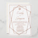 Jüdischer Star Schöne geometrische Abstrakte Rahmen Rose Gold Hochzeitseleganz. Klassisches minimales Luxus funkeln Einfaches und modernes abstraktes Design mit Rose Gold Foil, aber Sie wählen aus Rose Gold, Gold oder Silber Foil. Ideal für die Weihnachtsfeier oder für ein einfaches, modernes Hochzeitsthema. Kann in eine beliebige Farbe geändert werden, indem Sie weiter auf Anpassen/Bearbeiten/Personalisieren klicken. Sobald das Design-Tool in den unteren Bereich der Ebene scrollen und auf "bearbeiten" klicken, um das Hintergrundfarbwerkzeug einzugeben. #GeometricFrameWedding #SilverFoilWeddingInvitations
