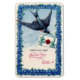 4" x 6" Flex-Style Magnet mit einem Vintage-Bild eines blauen Vogels, der einen Neujahrsgruß mit blauen Bändern trägt und mit rotem Wachs in einem Rahmen von schönen blauen Blumen versiegelt ist. Die gesamte Neujahrsmagnet-Kollektion finden Sie unter der Rubrik ZUHAUSE im Bereich HOLIDAYS.