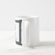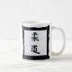 Weiße Tasse markiert mit den schwarzen Kanjisymbolen, die Judo in einem schwarzen orientalischen Artrahmen bezeichnen.