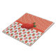 Keramik Kachel mit großen saftigen roten Erdbeeren auf fröhlich gespaltenen Früchten und Polka Punkte Muster Hintergrund.
