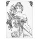 Jugendstil Alphonse Mucha Bild einer Frau in einem Kleid mit Blume. Es wird in einem großen Spiegelmuster in Schwarz und Weiß gemacht.