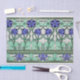 Blaue Blumen im Jugendstil und grünes Blätterpapier aus Linde.