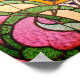 Das Hotel bietet ein Jugendstil-Blumenfenster-Design. In den Farben Gold, Grün, Rosa. Weiße Reisungen und violette Blumen.