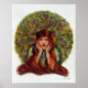 Ein Jugendstil, Deko Vintage Illustration einer langhaarigen, rot geführten Frau gerahmt mit Pfauenfedern Eine elegante Vintage Illustration einer klassischen Schönheit.