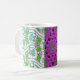 Weinreben und Blume schmücken diese lebhafte Tasse. In vielen Farben lila, pinks, blau, türkis, grün und weiß. Interessanter und hübscher Vintager Kacheldruck.