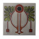 Obwohl diese Kachel aussieht, als hätte sie die gehobene Kontur des Originals, ist sie eigentlich flach, in einem Trompe l'oeil ("Narr das Auge")-Stil gedruckt, der das Aussehen der erhöhten Details auf dem Original auf einer glatten, mit Oberflächenfliesen versehenen Keramik einfängt.